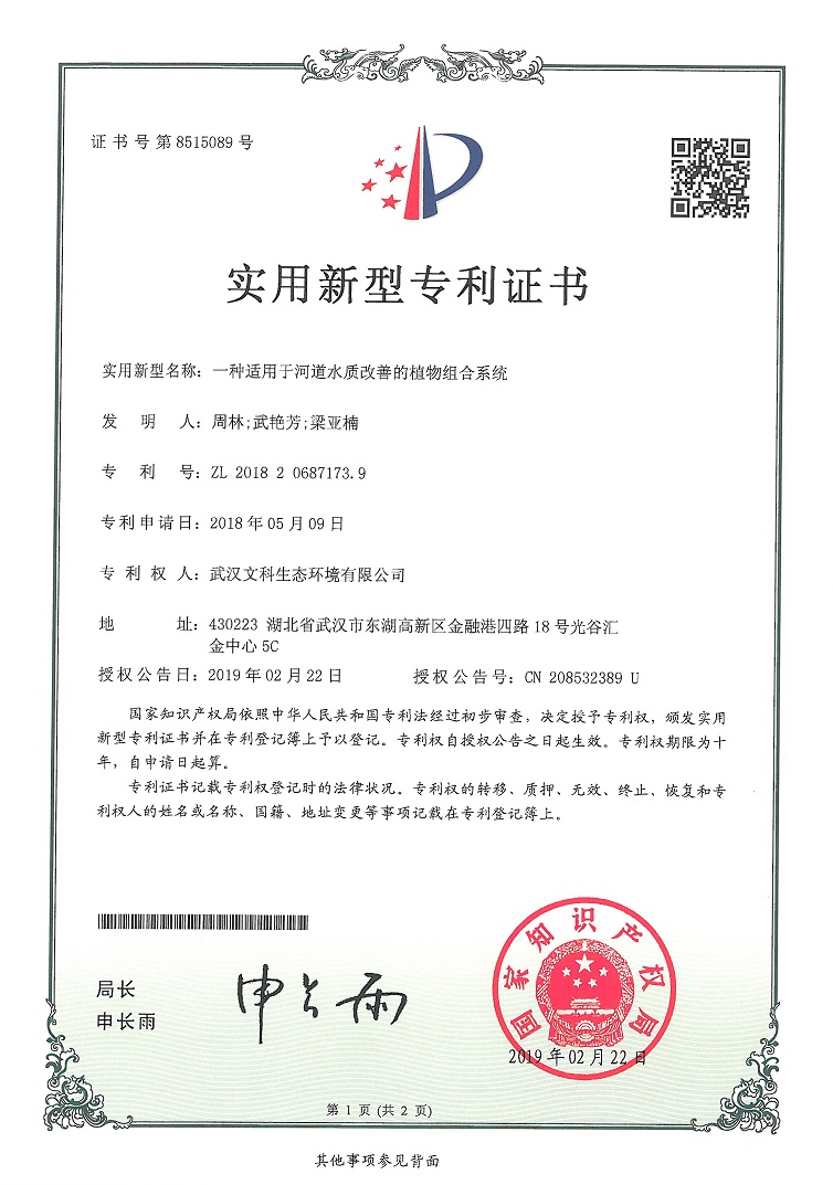 ¡°Ò»ÖÖÊÊÓÃÓÚºÓÁ÷Ë®ÖʸÄÉÆµÄÖ²Îï×éºÏϵͳ¡±×¨ÀûÖ¤Êé